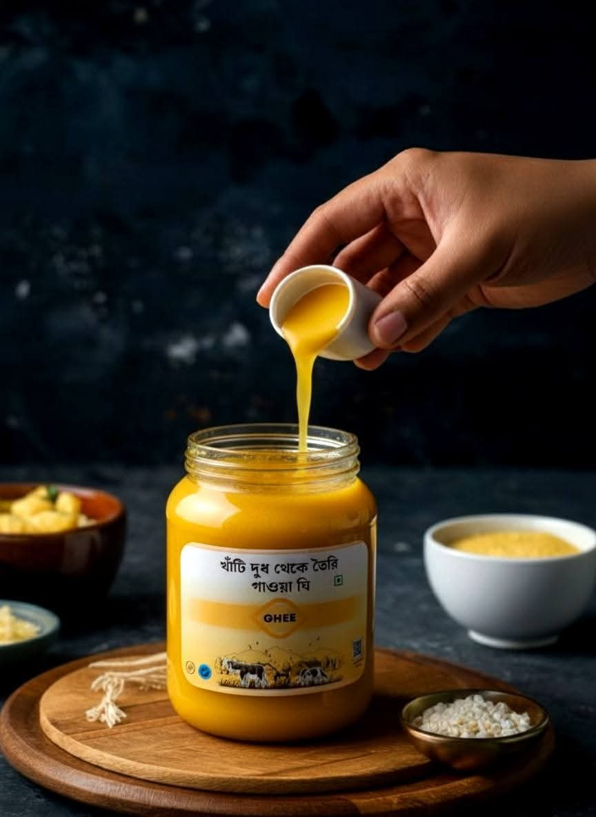 গাওয়া ঘি (Ghee) একটি পুষ্টিকর খাদ্য উপাদান যা বিভিন্ন স্বাস্থ্য উপকারিতা প্রদান করে এটি হজমশক্তি বাড়ায়, রোগ প্রতিরোধ ক্ষমতা শক্তিশালী করে, এবং ত্বক ও চুলের স্বাস্থ্য ভালো রাখতে সাহায্য করে। এছাড়াও, ঘি হৃদরোগের ঝুঁকি কমাতে এবং ওজন নিয়ন্ত্রণে রাখতেও সহায়ক হতে পারে। ।